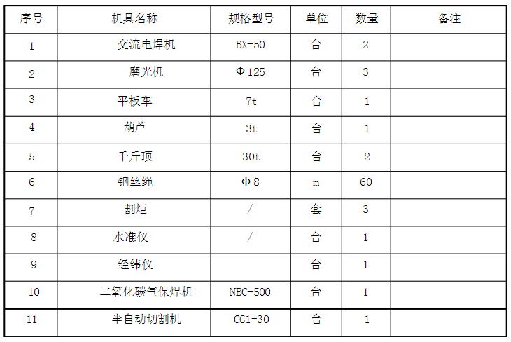 3、施工機(jī)具需用量計(jì)劃表,根據(jù)本工程實(shí)尿情況需用機(jī)機(jī)械設(shè)備如下表: